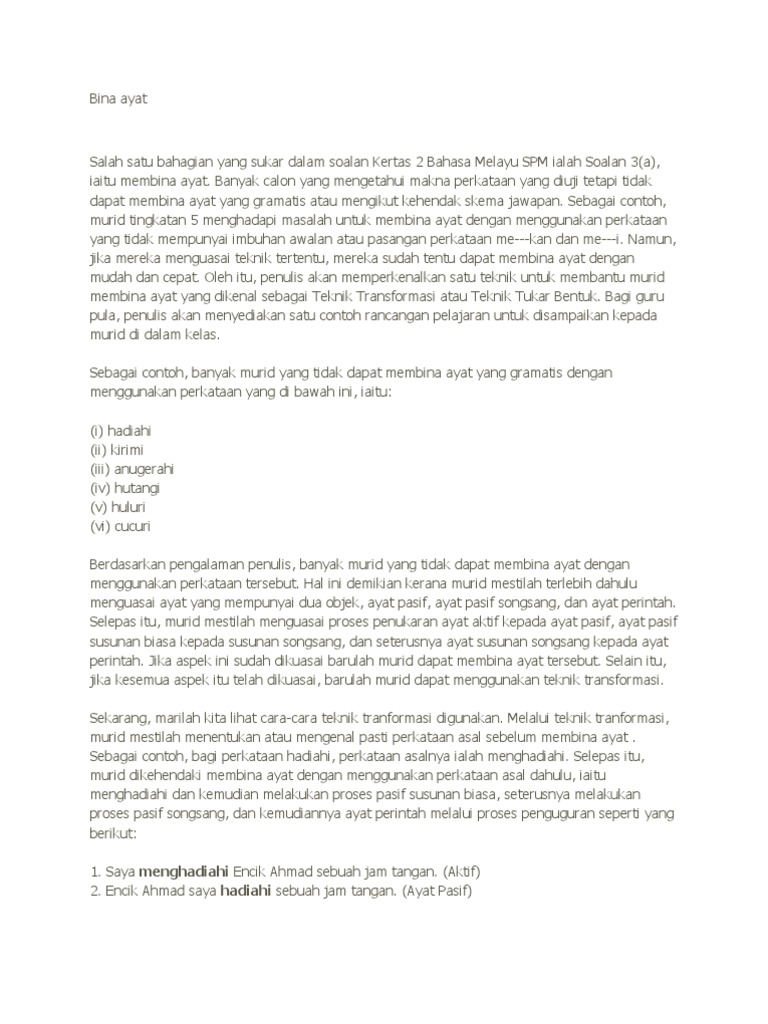 Nyatakan jenis ayat di bawah ini sama ada ayat aktif transitif ayat aktif tak transitif atau ayat. Contoh Ayat Perkataan membantu Contoh Ayat menggunakan Perkataan membantu dalam bahasa Melayu Sirip ekor besar membantu mereka untuk. Jadikan perkataan diuji sebagai kata nama khas.