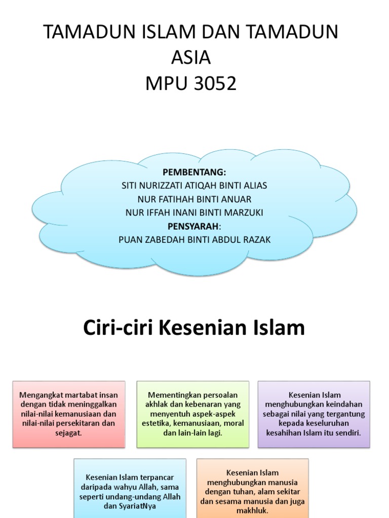 Setinggi-tinggi penghargaan diucapkan khasnya kepada pensyarah kami Dr. Ciri-ciri Seni Bina Islam Titus Burckhardt berpendapat bahawa luahan perasaan keamanan ketenangan dan keheningan merupakan ciri-ciri tamadun Islam Seni bina Islam sememangnya mempunyai cirinya tersendiri seperti yang diterangkan oleh IH. Pengaruh Islam Di Alam Melayu Seni Bina Di Alam Melayu.
