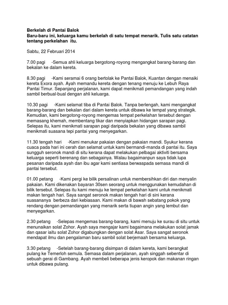 Berkelah Di Pantai Balok Cth Catatan Pdf